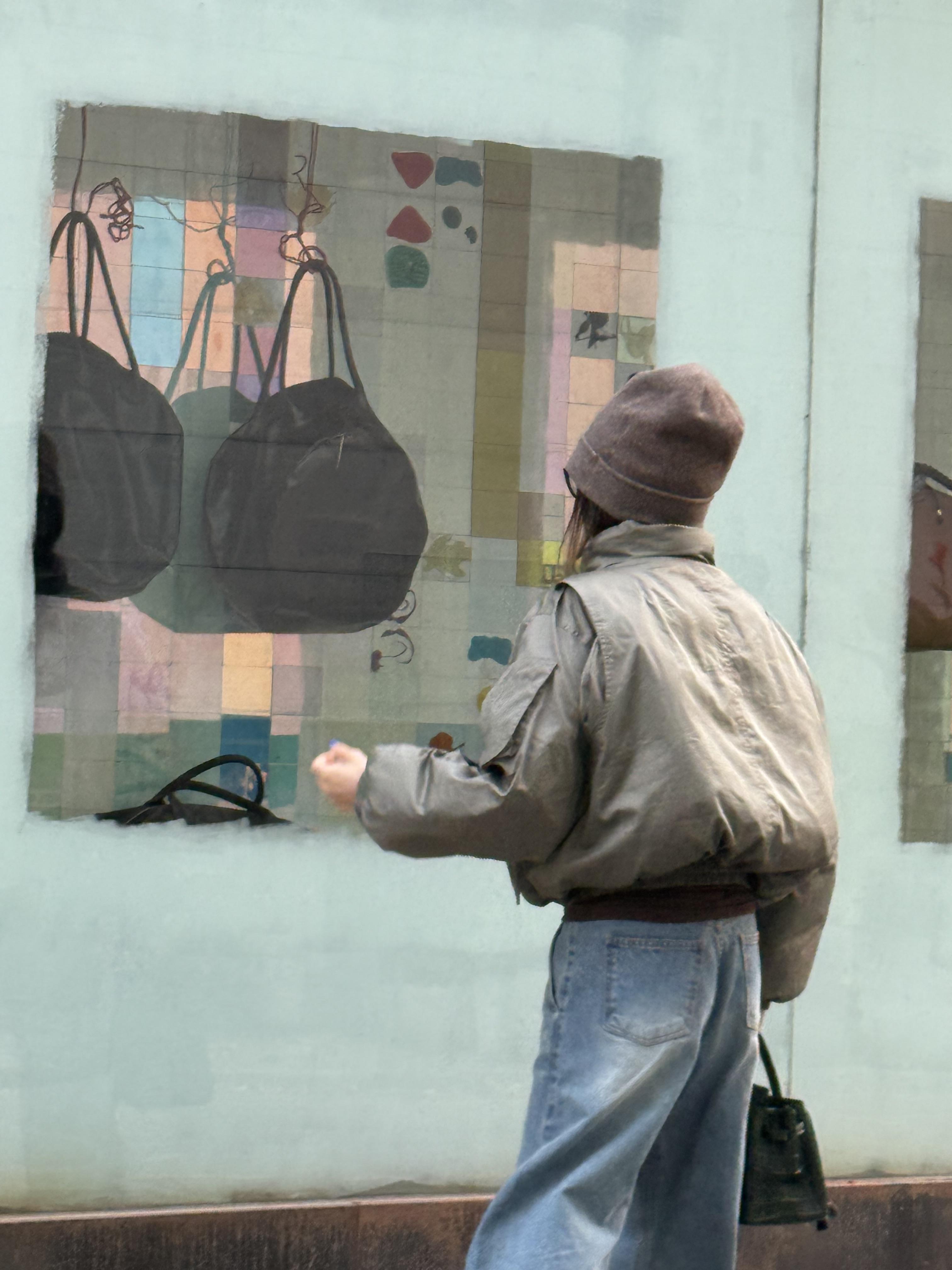어깨선이 자연스럽게 떨어져 여유로운 무드를 연출합니다.
