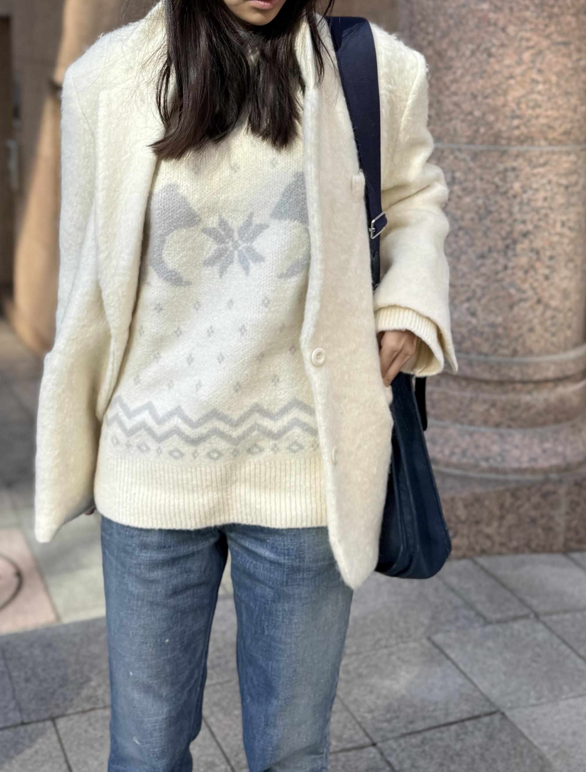 신축성이 좋아 하루 종일 편안하게 입기 좋은 베어 패턴 니트입니다.