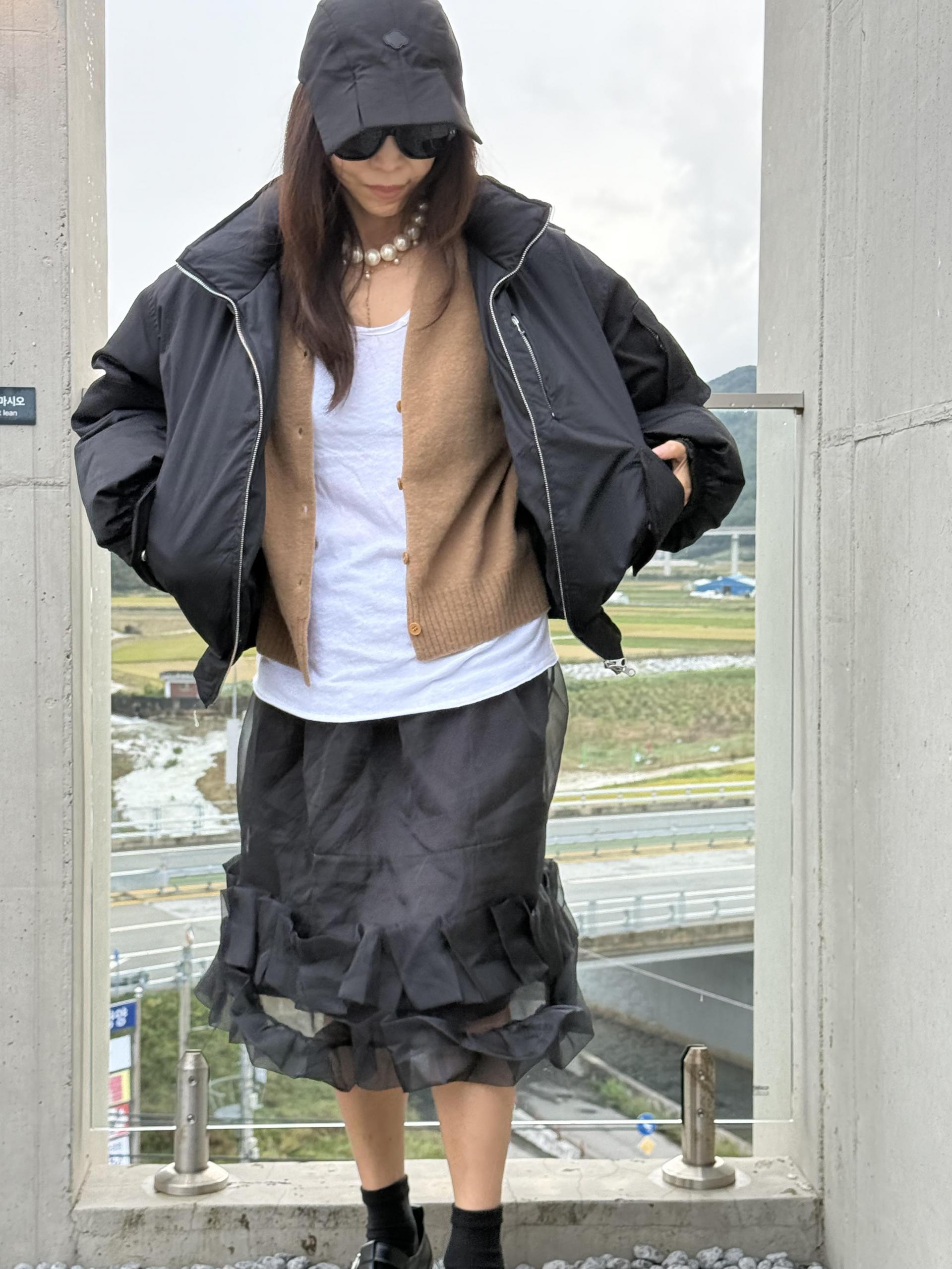 총길이 : 52cm / 가슴단면 : 54cm/ 소매길이 :57cm/ 어깨길이: 15cm/ 하단단면:44cm